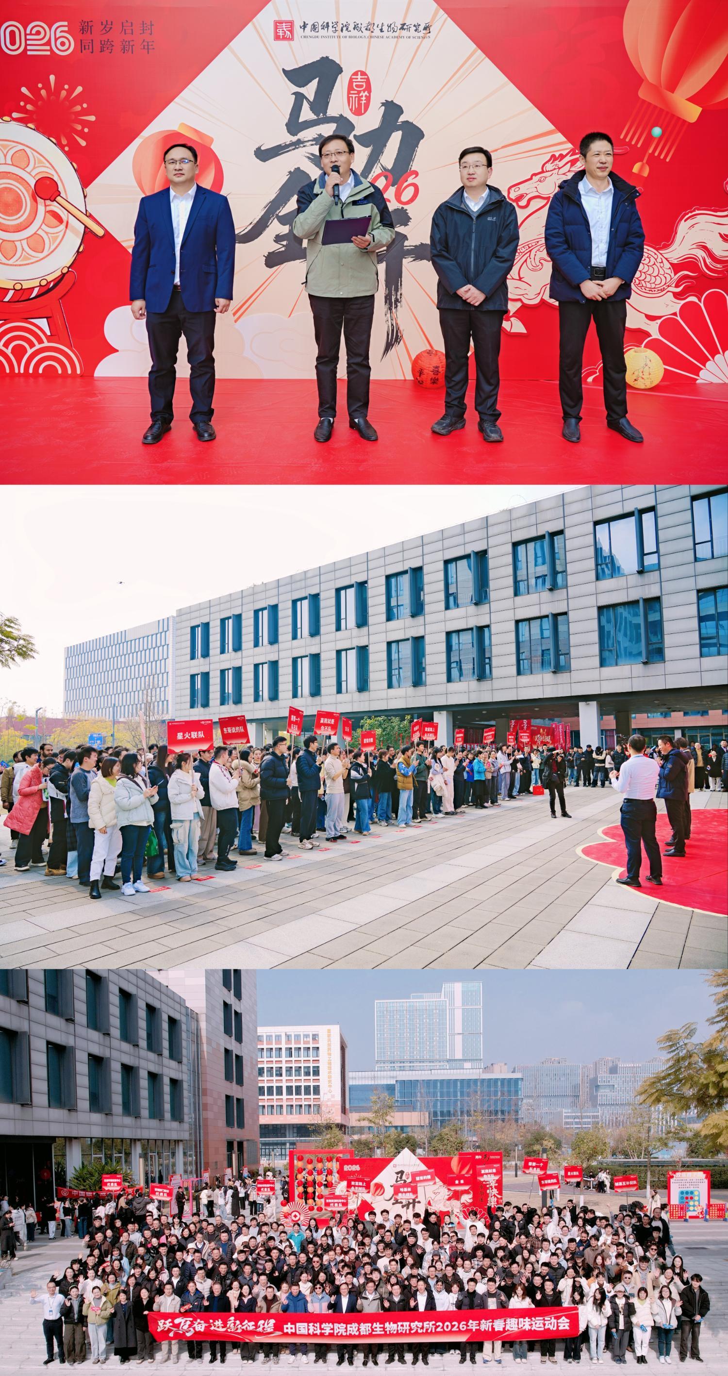 灵蛇辞旧岁,跃马启新程。2026年2月6日下午,中国科学院成都生物研究所南门广场暖意融融、欢声不断,由所工会、团委联合举办的“跃马奋进新征程”新春趣味运动会火热启幕。全所在职职工与研究生齐聚赛场,暂别实验室的严谨与伏案的专注,在趣味竞技中舒展身心、凝聚合力,以昂扬姿态迎接丙午马年,为“十五五”开局之年注入澎湃活力。