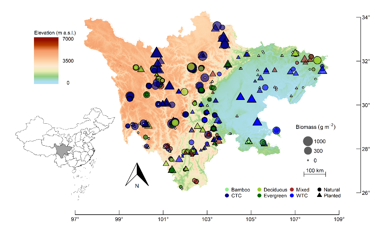 成都生物所揭示四川森林林下苔藓植物生物量及C、N、P养分变异模式