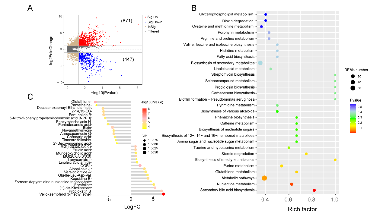 图2 Erwinia sp. PSI-03在亚硒酸盐胁迫下的代谢组分析