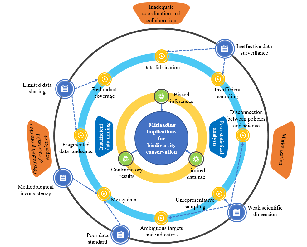 尽管成效显著,文章也指出了生物多样性数据体系存在的三大核心挑战,它们相互交织,构成了阻碍数据价值充分释放的“迷雾”。其一,调查方法与数据标准一致性不足,不同部门的数据难以“互通互认”,制约了“合力”的形成。其二,数据质量监督体系不完善,第三方验证机制尚缺,部分项目过度商业化侵蚀了一些研究者的职业道德,数据可靠性受冲击。其三,数据管理与应用机制不健全,跨部门、跨机构数据共享壁垒难破,部分在线平台存在更新滞后、标准模糊等不足,形成“信息孤岛”、“数据墓地”。科学数据与政策制定之间也存在脱节,导致有时保护决策依据的并非最新、最全面的证据。