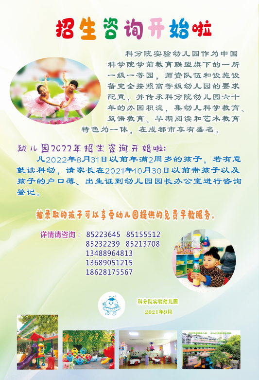 接科分院实验幼儿园通知,2022年招生咨询已开始,请有意向的同事查看附件,按要求准备材料,并在10月30日前进行咨询登记。