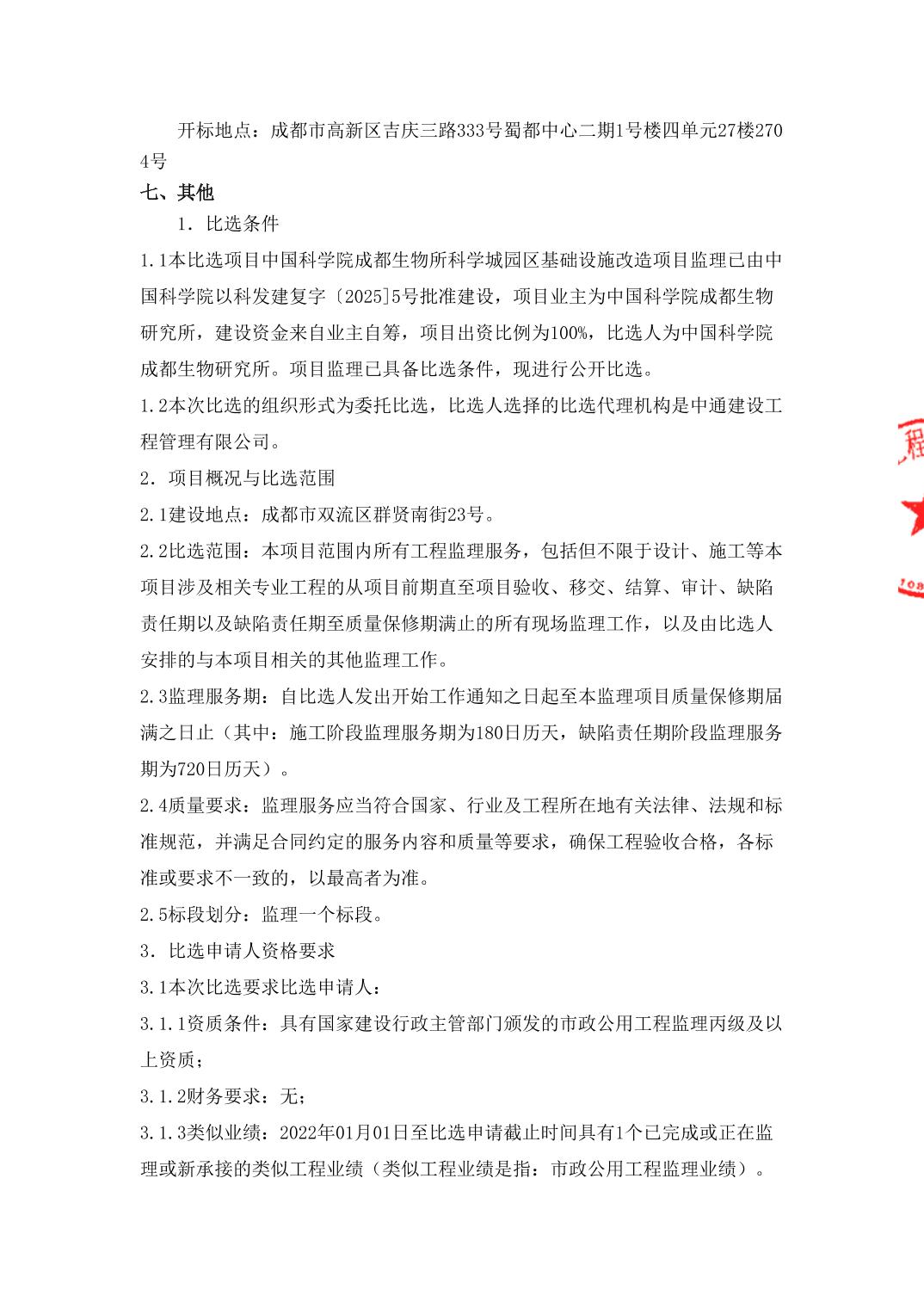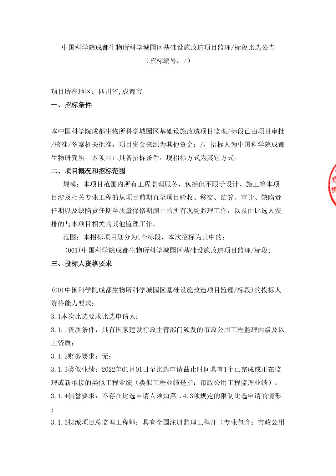 科学城园区基础设施改造项目监理标段比选公告