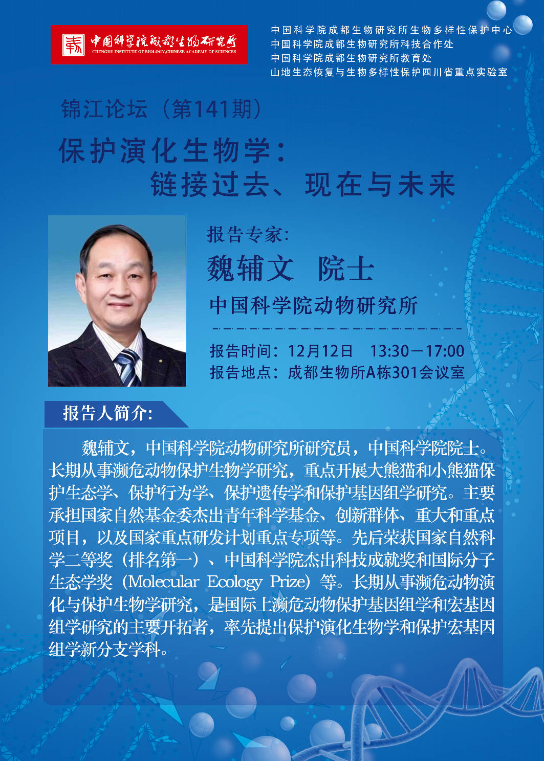 中国科学院成都生物研究所成立于1958年,是以一级学科建所的中国科学院直属事业单位。建所以来,成都生物所始终坚持面向世界科技前沿、面向国家重大需求、面向国民经济主战场、面向人民生命健康,围绕生物多样性保护、生态环境修复、生物资源利用等国家重大战略需求,开展基础性、战略性和前瞻性科学研究、技术研发与集成。获得了包括国家科学技术奖等在内的300余项科研成果,为我国生物资源利用、长江上游生态环境建设和生物多样性保护做出了重要贡献,以“地奥心血康”为代表的众多科技成果成功实现产业化,有力地推动了国家和地方社会经济发展。