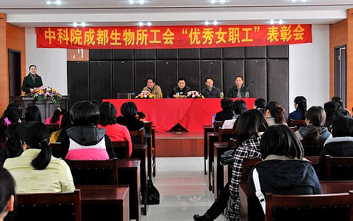 3月8日上午,成都生物所工会召开了“优秀女职工”表彰大会。所长吴宁、党委书记汪光泽、副所长、工会主席叶彦、副所长张国林出席会议。全所130名女同胞参加了表彰大会。会议由工会副主席刘丽主持。