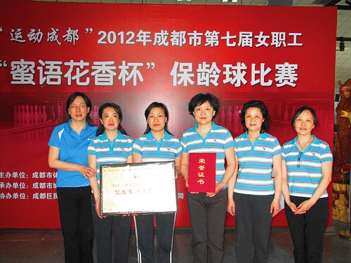 4月13日,成都生物所女职工保龄球代表队参加了2012年成都市第七届女职工“蜜语花香杯”保龄球比赛,取得了团体第二名的优异成绩,并被评为优秀组织工作单位。