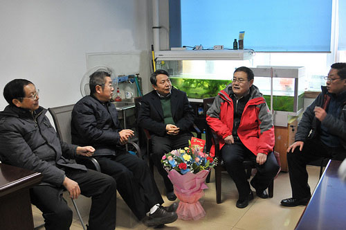 1月16日,成都分院党组书记、常务副院长王学定,工会副主席李雁琴一行代来到成都生物所,慰问了两爬室主任唐业忠研究员等科技骨干人员,向他们致以诚挚的问候和节日的祝福,并对他们一年来作出的贡献表示衷心的感谢。