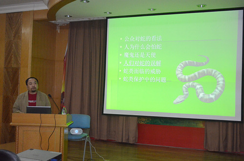 3月28日晚,由中科院成都生物所团委主办,两栖爬行动物研究室团支部和两栖爬行动物保护协会承办的“蛇年说蛇”科普讲座活动在综合楼二楼会议室举行。