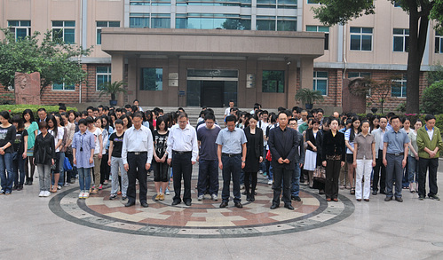 地震遇难同胞的哀悼,4月27日早上8时2分,成都生物所全所职工和学生集体为地震遇难者默哀3分钟。