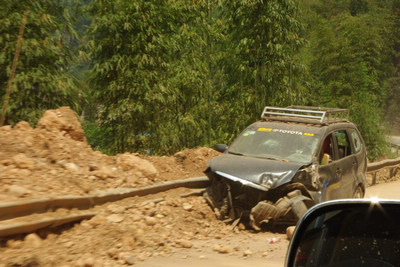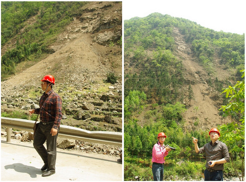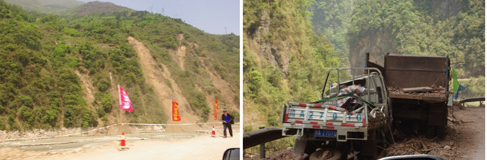 13:04分,根据从保护区获得的第一手资料,向灾情严重的地区进发,一路上滑坡点逐渐开始密集分布。
