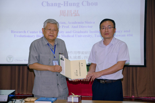 2013年8月3日下午,发展中世界科学院院士、台湾中央研究院院士、中国医药大学(台湾)教授、生物多样性研究中心主任、首席科学家周昌弘先生访问我所,并向我所赠送了其出版的英文著作。中国科学院成都生物研究所副所长、生态研究中心主任、中国科学院山地生态恢复与生物资源利用重点实验室和生态系统恢复与生物多样性保育四川省重点实验室副主任刘庆研究员出席了会议,并代表我所接受捐赠。周昌弘院士做了题为“生物相生相克物质在永续农业中的应用”的学术报告,会议由生态研究中心潘开文研究员主持。