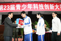 都生物所在本次创新大赛上设立的专项奖——“中科生物英才奖”和“中科生物创新奖”进行了首次颁奖,这是四川省创新大赛首次设立的专项奖。成都生物所所长吴宁研究员、工会主席郭庆新同志分别向获得“中科生物英才奖”和“中科生物创新奖”的优秀青少年颁发了荣誉证书和奖金。