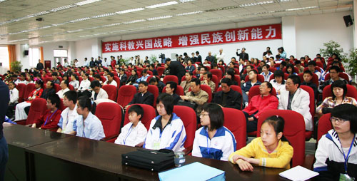 颁奖大会由四川省科协青少年科技活动中心主任何亚非主持,四川省科协、绵阳市人民政府、中科院成都生物所以及绵阳市有关部门负责人出席了颁奖大会。成都生物所所长吴宁研究员向获得“中科生物英才奖”的5个获奖项的同学颁发了证书和奖金,并向他们赠送了学习用品。成都生物所工会主席郭庆新同志向获得“中科生物创新奖”的同学颁发了证书和奖金。吴宁所长在颁奖大会上还发表了