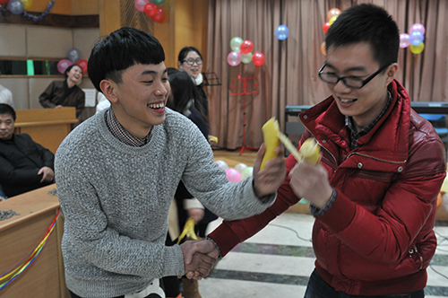 叶彦在迎新晚会上为研究生和外国友人送上了新年的祝福,回顾了成都生物所一年来取得的成绩,并鼓励大家继续努力,发扬艰苦奋斗精神,争取取得更好的成绩。