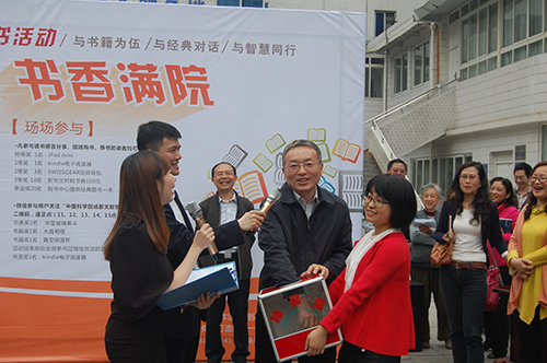 活动得到了社区成员的积极响应,近百人参与,有古稀老人、青年学生、也有稚气孩童,大家在一起分享读书心得,感受与书籍为伍、与经典对话、与智慧同行的书香氛围。活动穿插了微信关注、抽奖等互动环节,让现场气氛更加活跃。活动二等奖奖品由成都生物所赞助。