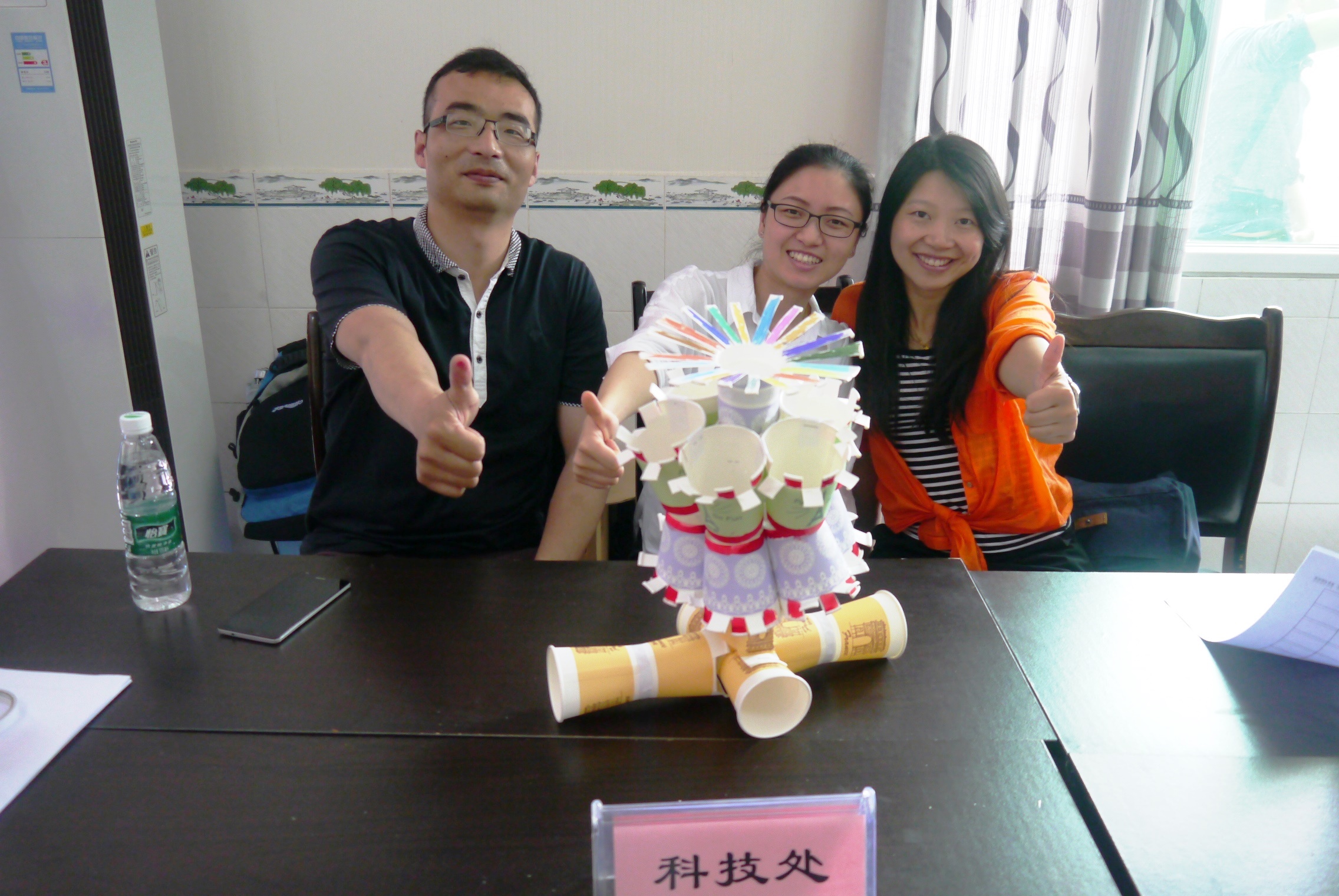 竞赛活动包含环境保护知识竞赛和“变废为宝——废弃物利用”作品制作比赛两个部分,各个工会小组分别派出职工代表作为参赛队员。知识竞赛以生活中的环保常识为主题,考察大家的环境保护意识;废弃物利用作品制作比赛是将一次性纸杯制作成灯笼,倡导变废为宝、循环利用、创意改变生活的主题,各参赛队员发挥聪明才智,现场手工制作出各式各样的灯笼,并向评委和观众进行了展示。科技处工会小组利用20多个纸杯制作成“天宫一号”灯笼,综合办工会小组精心准备,制作出“猴年送祝福”灯笼……经过两个环节的激烈比拼,综合办工会小组、农业中心工会小组、人事教育处和党群办联合工会小组分获前三名。