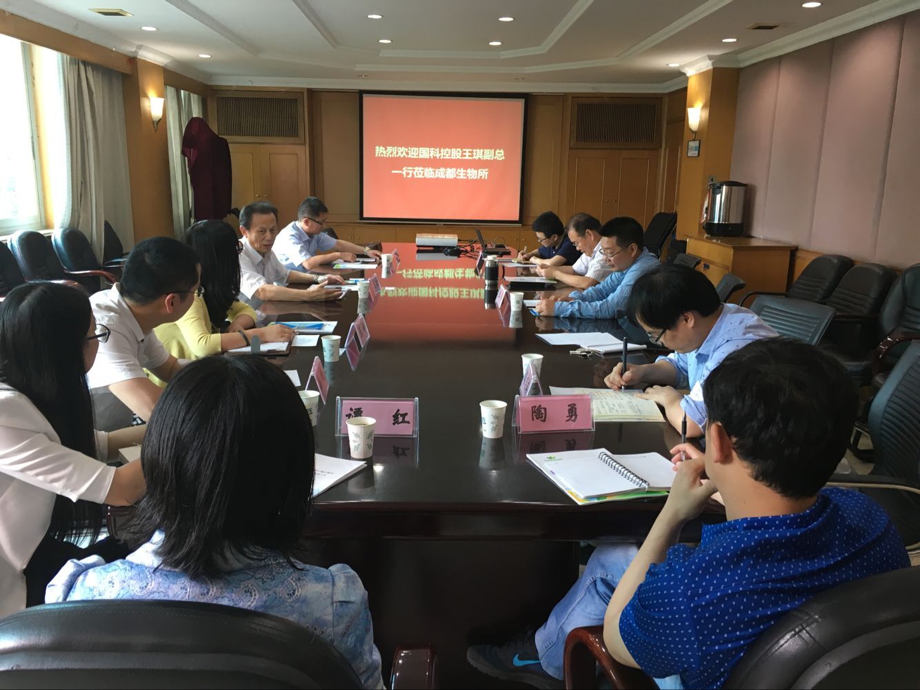 5月18日,国科控股副总王琪一行到中国科学院成都生物研究所实地调研科技成果转化工作。成都生物所所长赵新全、所长助理唐卓、科技处处长王涛及相关科技人员参加调研座谈会。