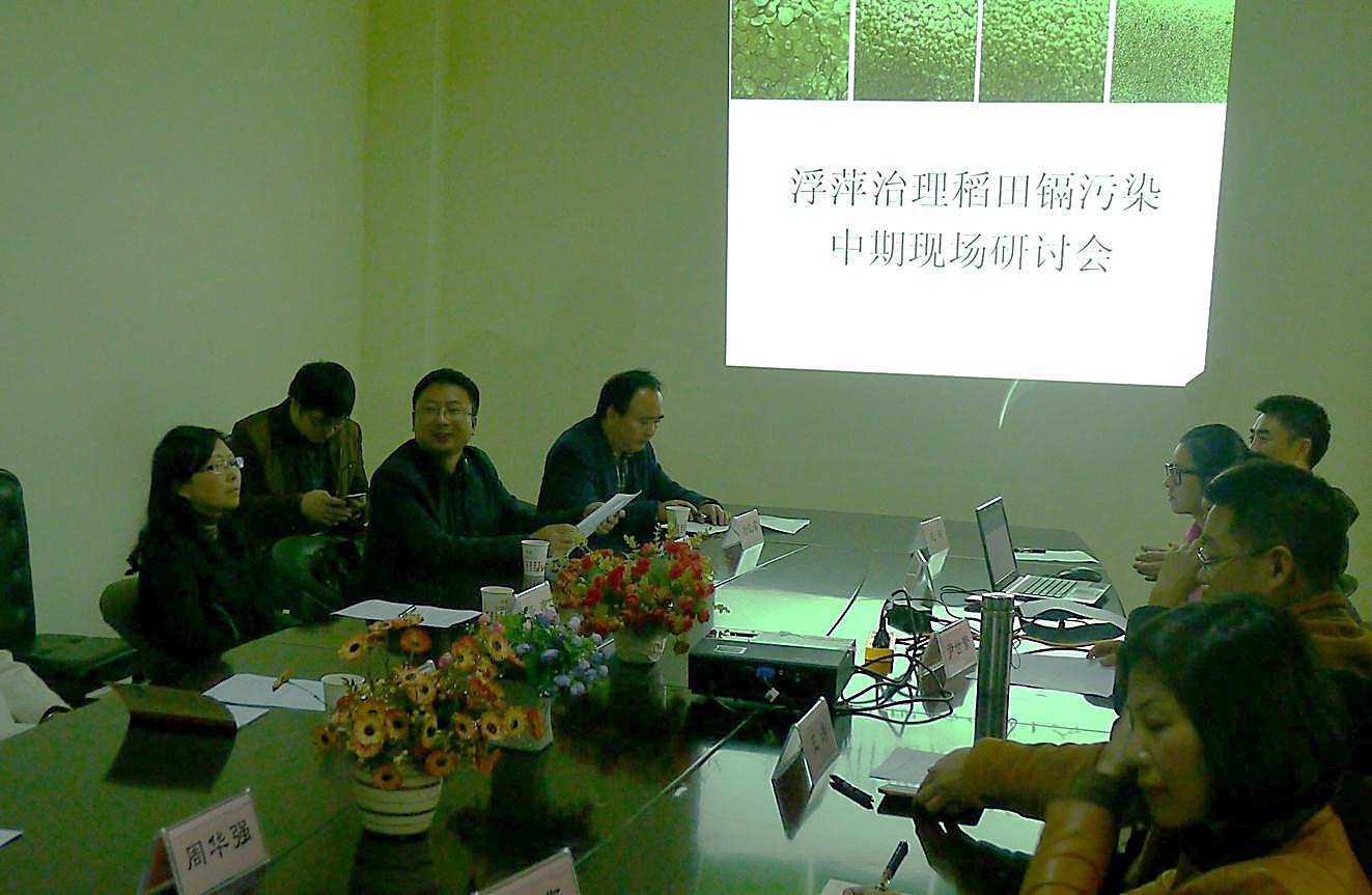 会上,成都生物所课题负责人方扬代表项目组详细介绍了该项目的研究进展,包括相关地区稻田镉污染现状调查、浮萍治理稻田镉污染的野外试验结果、浮萍超富集镉的代谢调控机制解析等,以及下一步的工作规划。汇报后,项目组成员和与会人员就目前研究进展展开了充分讨论,并受到了与会领导、专家的一致好评。最后,专家组充分肯定了浮萍与水稻共生治理农田镉污染的突出优势以及目前项目研究已获得的突破性进展,并建议研究人员后续还要在种植制度、综合利用、技术集成、推广模式等方面加大研究力度,加快技术推广速度,争取早日应用于污染农田的修复。