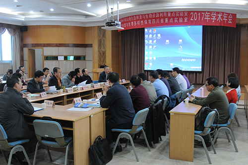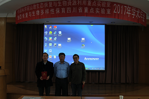4月14日,中国科学院山地生态恢复与生物资源利用重点实验室、生态恢复与生物多样性保育四川省重点实验室(以下简称实验室)在中国科学院成都生物研究所召开2017年学术年会。实验室学术委员会主任、中国科学院地理科学与资源研究所副所长、于贵瑞研究员,学术委员会副主任、中国科学院成都生物研究所所长赵新全研究员,以及学术委员委员中国科学院华南植物园周国逸研究员、中国科学院生态环境研究中心刘国华研究员、四川大学生命科学院常务副院长林宏辉教授、南京大学孙书存教授、四川农业大学张健教授和西南大学曾波教授等,中国科学院前沿科学与教育局重点实验室处娄治平研究员出席了此次会议;依托单位成都生物所党委书记、副所长叶彦,党委副书记、纪委书记、副所长刘刚君,科技处处长王涛、副处长韩思怀,实验室副主任潘开文、陈槐、江建平,实验室青年创新团队负责人尹华军、李家堂以及实验室科研骨干、研究生等60余人参加了会议。会议由实验室主任刘庆、学术委员会主任于贵瑞共同主持。