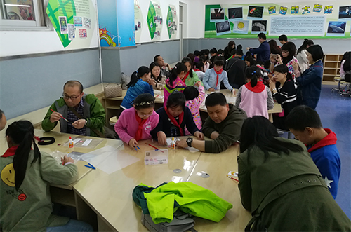 报告结束后,生态中心严文超带领学生以及学生家长进行亲子互动环节—植物书签标本的制作。通过制作书签活动,提高了同学们动手创作能力,增进亲子感情。