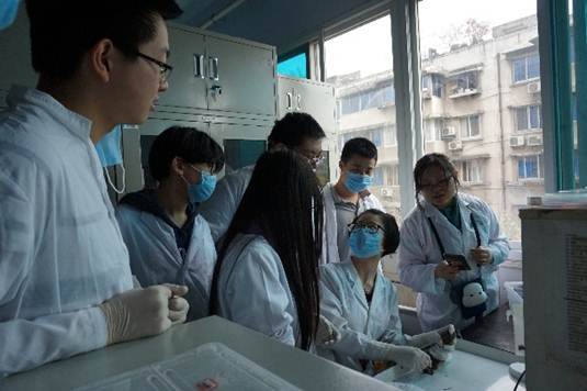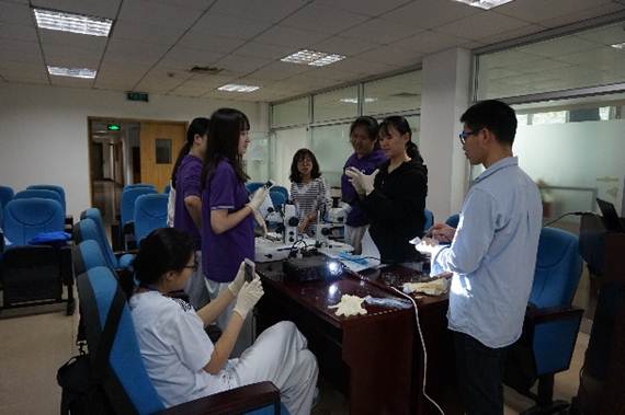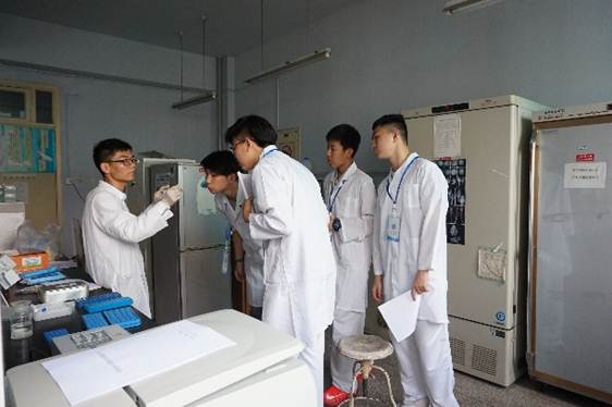 课程从 “中国两栖爬行动物生存现状”知识讲座开始。两栖爬行动物研究室的吴亚勇博士呼吁大家关注两栖爬行动物的保护。讲座结束后,学生依据个人兴趣自行选择科学体验课程,在两爬中心的博士及硕士带领下分组进行了(1)动物DNA 提取;(2)两栖动物的变态过程观察(蝌蚪的观察与测量);(3)两栖爬行动物骨骼构造及形态功能;(4)屈肌反射、 搔扒反射的观察及反射弧分析(附蛙坐骨神经分离) 的课题研究。课程中,老师们生动地讲授了每个课题的实验原理,实验方法和注意事项等,学生和老师进行了热烈的讨论。课程结束后,同学们参观了两栖爬行动物科普馆。