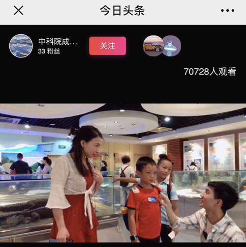 此次公众日以“探秘两栖爬行动物”为重点,成都生物所知识管理中心通过媒体和生物所自媒体吸引了大众广泛参与。成都市多个中小学、中国报道小记者俱乐部等多家机构共272组家庭约500余人现场参加活动。知识管理中心联合今日头条,开展现场直播活动.当日点击量超过了7万。