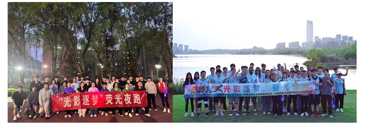 荧光夜跑活动合照(左为中国科学院大学雁栖湖校区,右为成都学院&成都生物研究所)