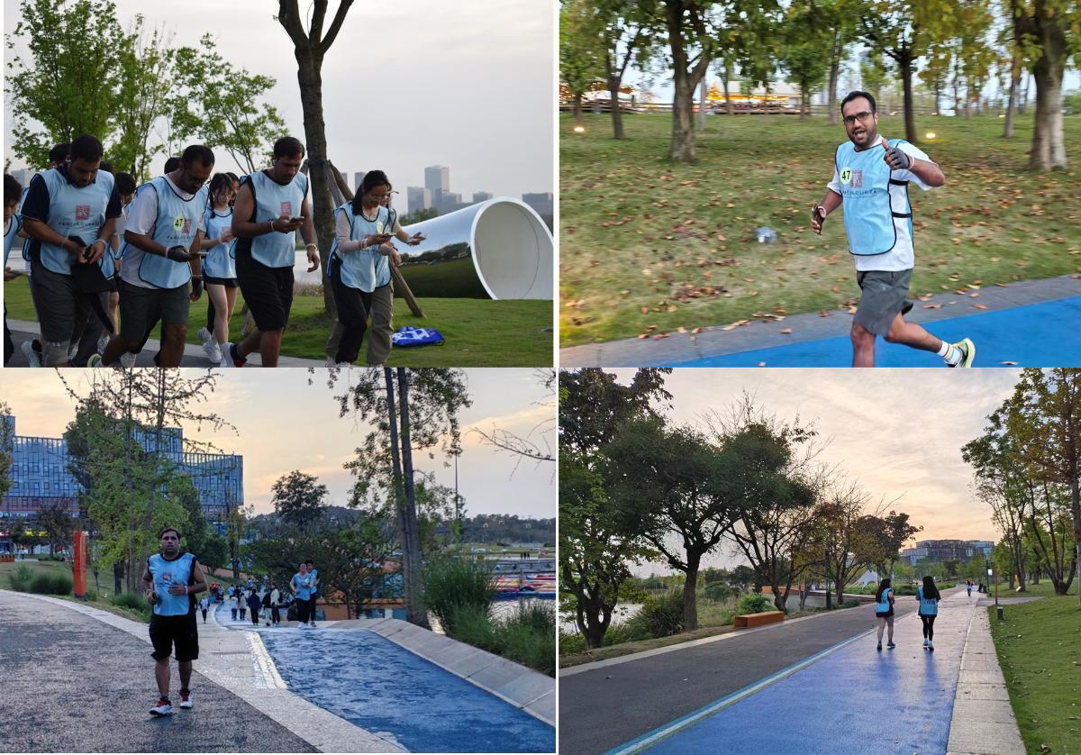 傍晚19:00活动正式开始,雁栖湖和兴隆湖广场被激情与荧光点燃。参与活动的同学们佩戴荧光手环,随心跑队伍率先出发,在湖畔晚风的陪伴下,享受奔跑的快乐,释放开学以来的压力,挑战跑队伍紧随其后,同学们迈着坚定的步伐,向着目标奋力奔跑。夜色渐浓,同学们身上的荧光手环在夜色中闪烁,点亮了雁栖湖和兴隆湖的夜空,也彰显着新时代研究生的青春活力。
