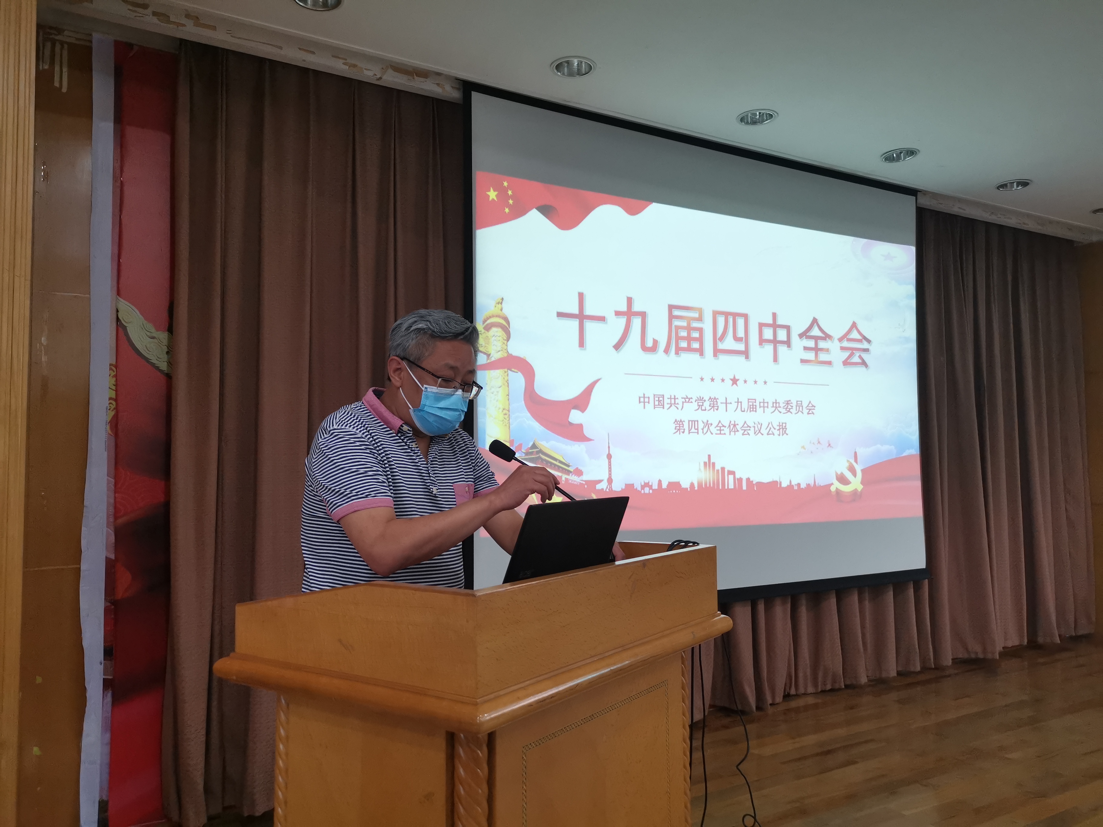 吴宁就学习党的十九届四中全会精神谈心得体会。他首先带领大家厘清“治理体系”的概念。他指出,党的十九届四中全会首次明确提出了将制度优势转化为治理效能,系统阐释了我国国家制度和国家治理体系具有的多方面显著优势,分别阐述了中国特色社会主义制度体系的13个方面。