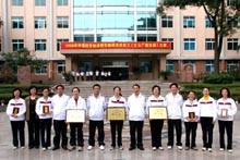 首先上场的是生态中心参赛队,他们喊着响亮的口号,迈着整齐的步伐进场,动作标准划一,俨然像训练有素的队伍,当他们退场后,迎来了阵阵掌声。随后综合办、财务室、信息中心参赛队,天然中心参赛队,农业中心参赛队,两爬参赛队,微生物中心参赛队和科技处、文献中心、人教处参赛队一一上场。全所所领导和中层干部除出差外都参加了比赛,虽然他们因为工作繁忙没有什么时间练习,仍然尽最大努力配合着全队,虽然他们的动作有一些笨拙,但他们认真地态度激励着每一位队友。每个队经过激烈的角逐,评委本着公平、公正、公开的原则,评选出了本次比赛的前三名,他们是农业中心参赛队、两爬中心参赛队和生态中心参赛队,吴宁常务副所长、汪光泽书记、葛丽佳副主席和叶彦所长助理分别为获奖队颁奖。