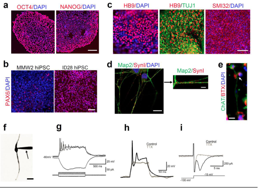 中美研究人员在前期的高效神经诱导基础上,通过严格控制神经形成的时制和全面优化供神经元成长的细胞外基质(ECM)及培养条件,开发了一种快速 (~20天)、高效(约70 %)高产(>250%)的从hESCs和hiPSCs诱导培育成熟及功能化MNs的化学定义贴壁培养方法。该研究显著提高MN的培育条件,这将有助于人类MNs在治疗中的应用。