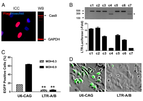 研究人员利用了近一年来极其热门的CRISPR/CAS9基因剪辑技术。因简便、价廉、多功能和高效率,这种技术也被誉为“基因组编辑的魔术手术刀”。这种技术就是通过RNA(核糖核酸)做向导,把Cas9酶带到相应的位置,然后用这种酶切割病毒DNA(脱氧核糖核酸)。