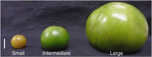 茄科酸浆属的一些物种的果实药食同源,其生殖器官(包括花部器官、浆果和种子)的大小协同变化,可分为大、中和小3个组。但这一器官大小自然变异现象的分子遗传调控基础尚不清楚。中科院植物研究所贺超英研究组7月1日在线发表在《自然—通讯》杂志上的研究成果发现了植物果实大小自然变异遗传调控的新机制。