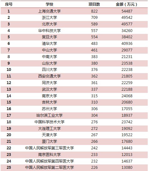 现将各单位2014年国家自然科学基金资助统计如下,按经费来算,上海交通大学今年获得了超过5亿元的基金资助,成为本年度的吸大户。浙大、北大、华中科技大和复旦位列二至五位。