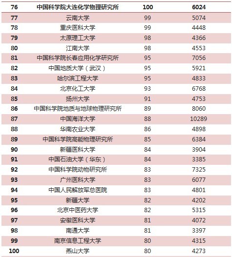 2014国家自然科学基金获批单位TOP100
