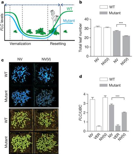在拟南芥中,开花抑制因子FLC(floral repressor locus)表达的重置是一个重要的表观遗传学重编程。在春化过程中,长时间的寒冷会使FLC受到表观遗传学沉默。然而,FLC会在种子发育完成之前重新激活,确保每一代植物都需要春化。虽然人们对春化作用诱导的表观遗传学沉默已经有了比较详细的了解,但FLC再活化的机制仍然是个谜。(延伸阅读:2012年表观遗传学头条新闻盘点)