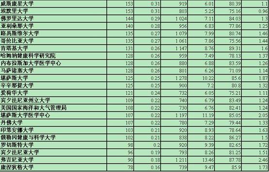 表2 2009~2013年美国毒理学研究机构的论文产出情况