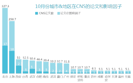 二、10月份城市&地区在CNS的论文和影响因子