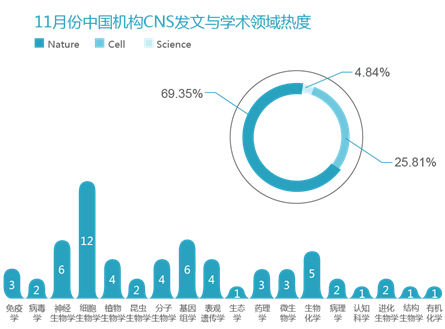 一、11月份中国机构CNS发文与学术领域热度
