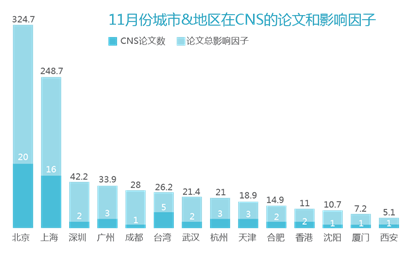二、11月份城市&地区在CNS的论文和影响因子
