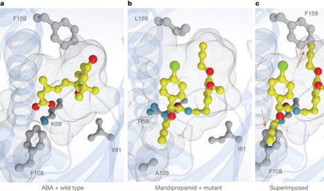 干旱是影响植物生长和发育的主要环境胁迫因子。当植物遇到干旱,自然地产生应激激素脱落酸(ABA),抑制植物生长并降低水份消耗。具体而言,当植物中的激素像手进入手套一样紧密接触受体(特殊的蛋白质)时,会打开受体,引起有益的变化——例如关闭叶片气孔的保卫细胞以减少水的损失——帮助植物生存。