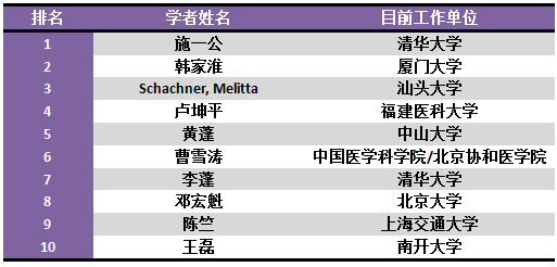 生化,遗传和分子生物学领域“高被引”中国学者TOP10