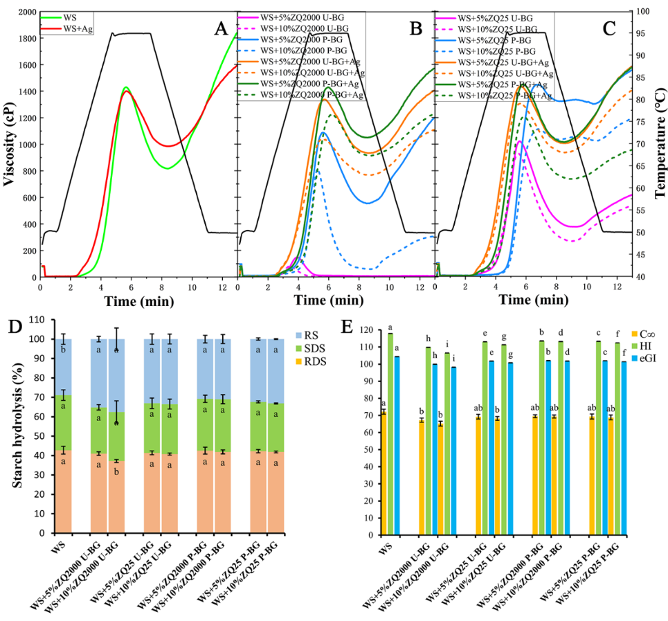 图2 β-葡聚糖添加抑制了淀粉的糊化和消化