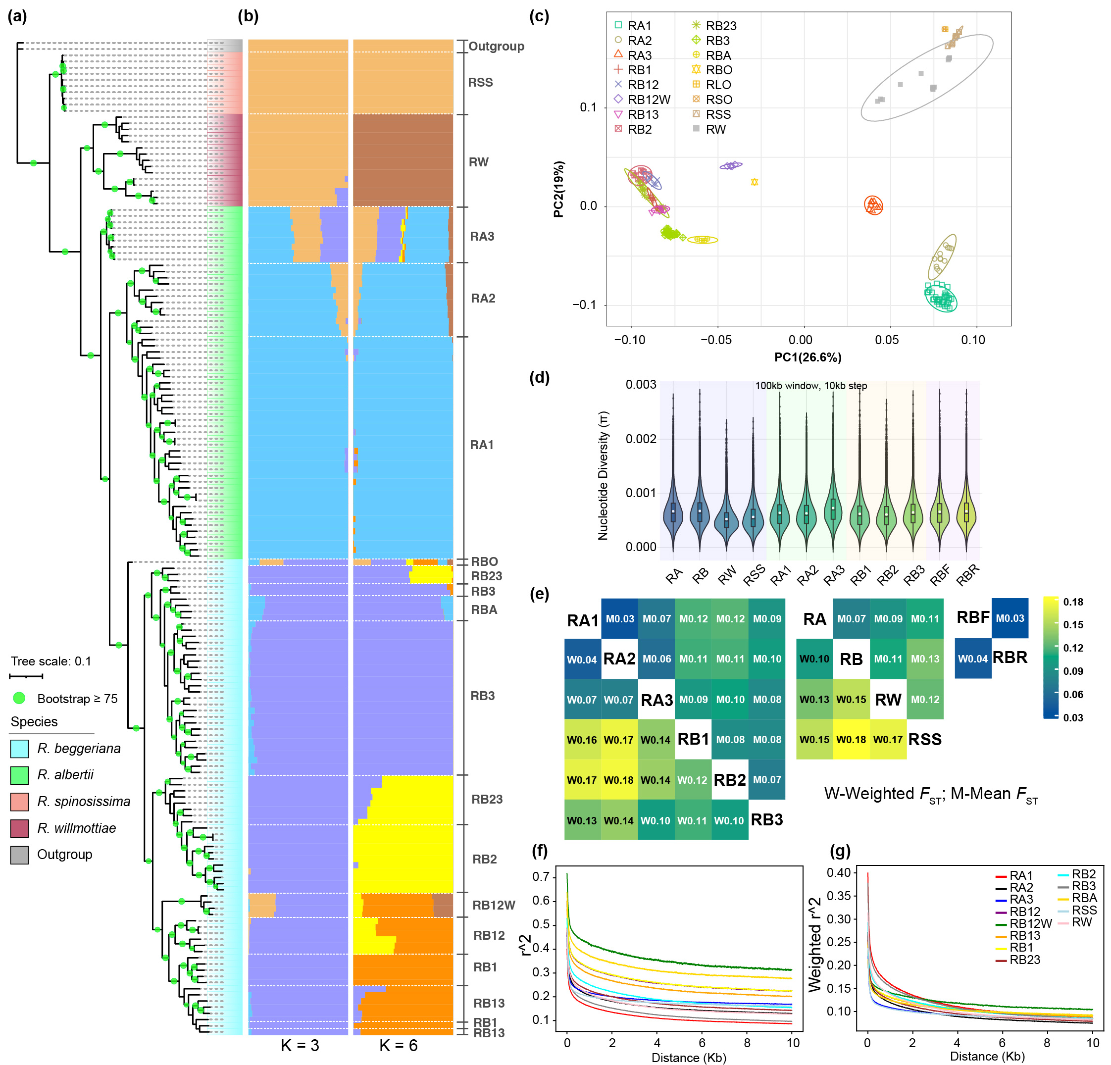 图二 二倍体系统发育与群体结构