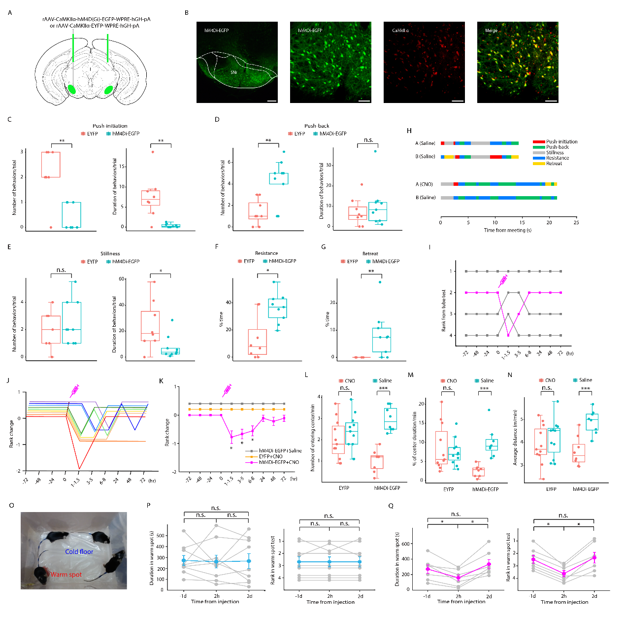 图3. 化学遗传抑制SNrGlu神经元导致小鼠社会等级下降