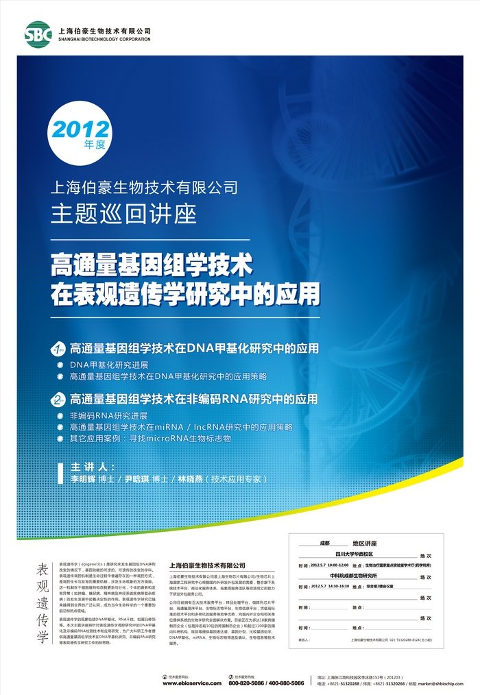 [2012-05-07]伯豪生物:高通量基因组学技术在表观遗传学研究中的应用