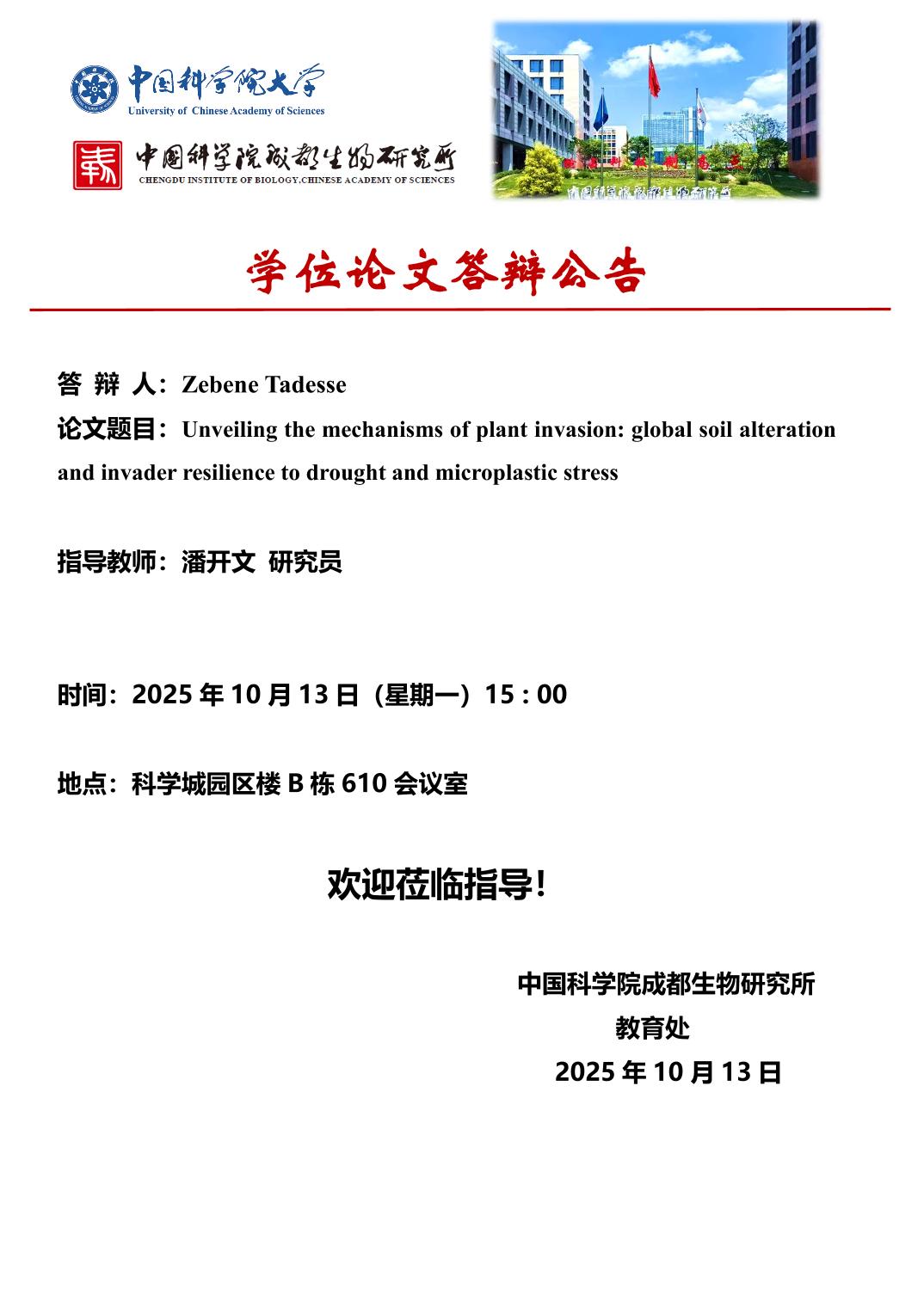 学位论文答辩公告 - Zebene Tadesse