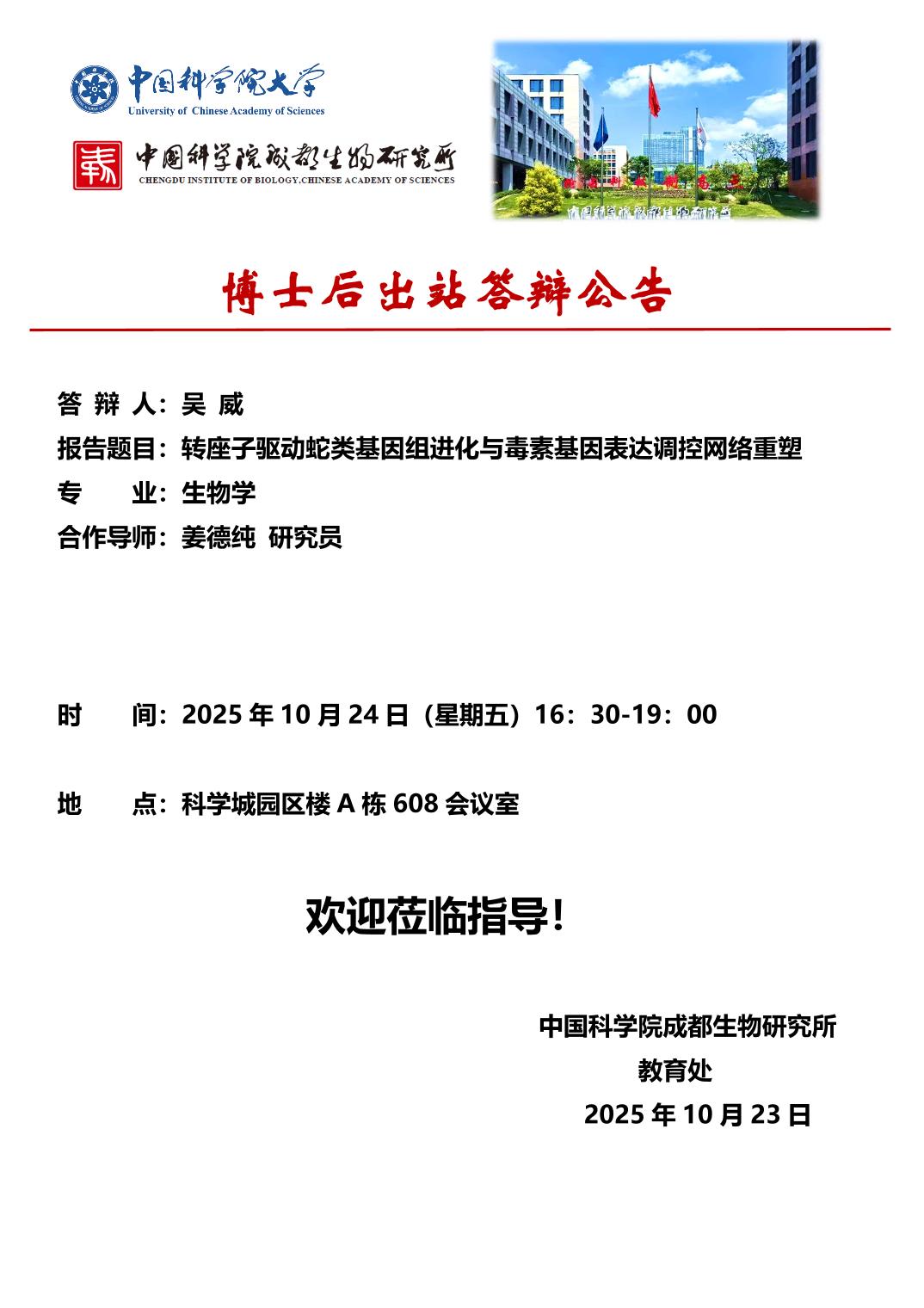 中国科学院成都生物研究所2026年“卓越计划”优秀博士生、硕士生专项