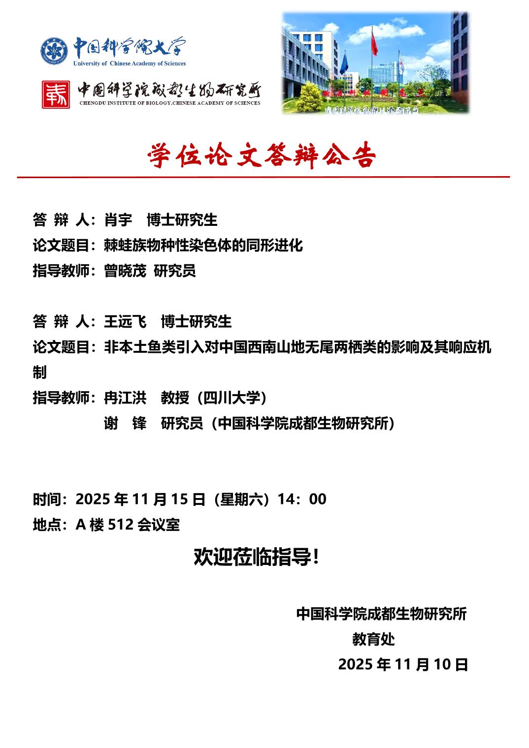 学位论文答辩公告 - 肖宇、王远飞