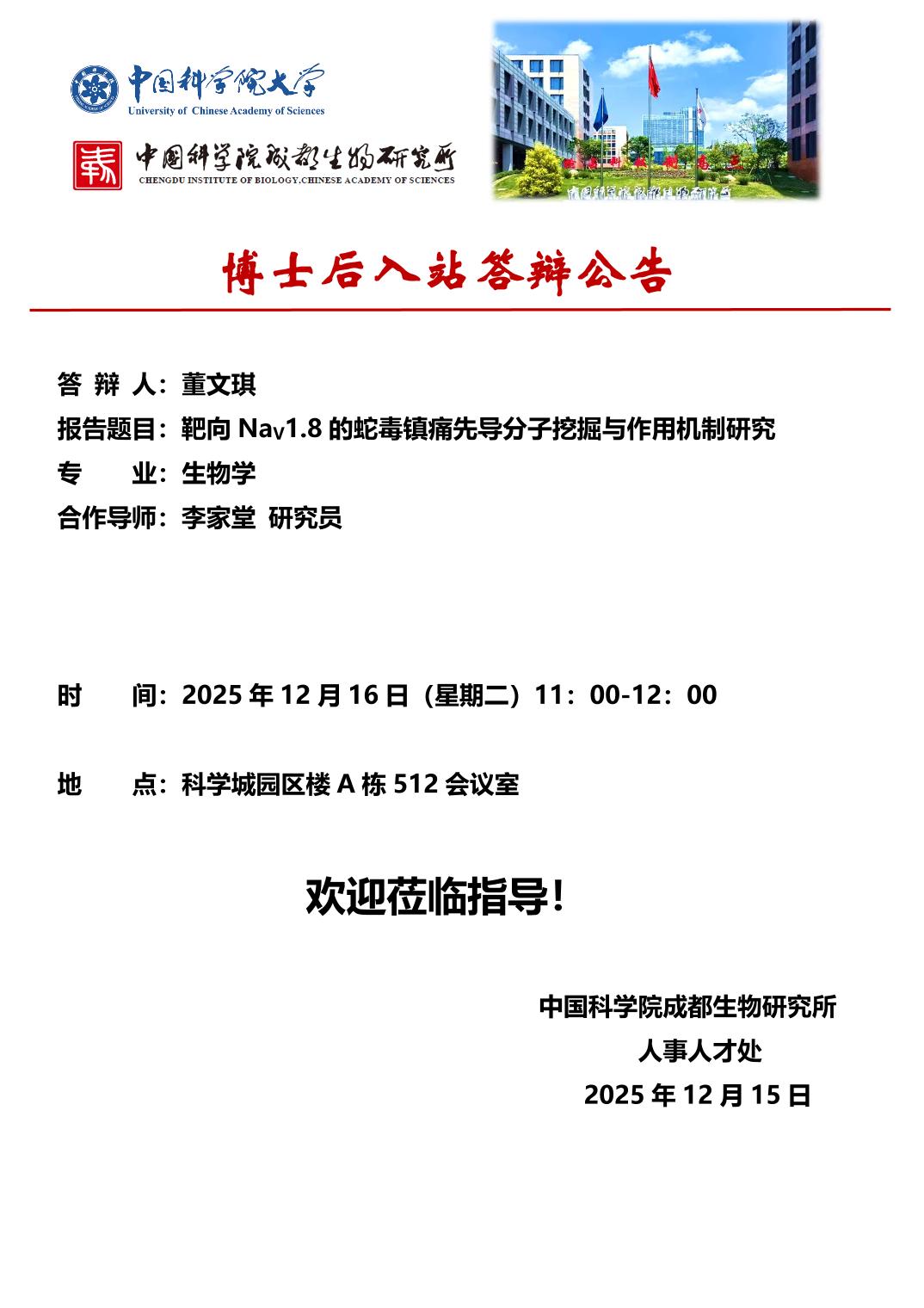 中国科学院成都生物研究所2026年“卓越计划”优秀博士生、硕士生专项