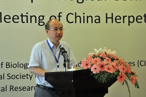 张亚平院士、俄罗斯科学院院士Natalia B.Anajeva、院国际合作局副局长曹京华、中国动物学会两栖爬行动物学分会会长计翔、成都生物所所长赵新全分别在大会上致辞。